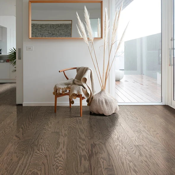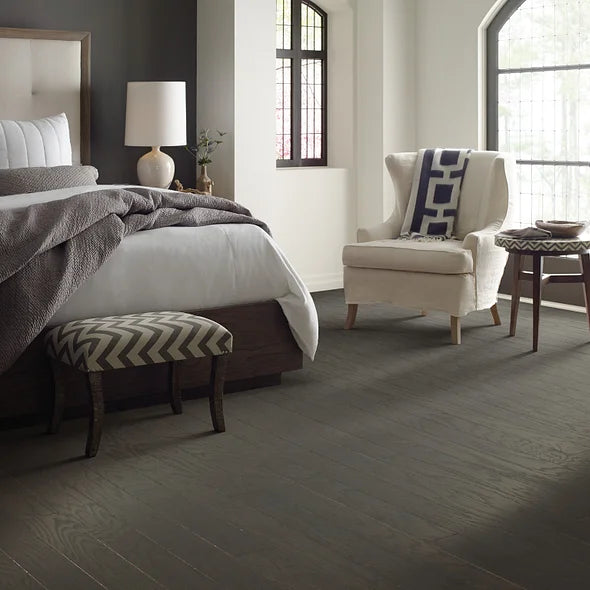 Classic hardwood flooring in both traditional and modern colors. This oak hardwood floor showcases the charm and natural beauty of hardwood, accentuated with a wide range of character. Offered in 3 1/4" and 5" widths.