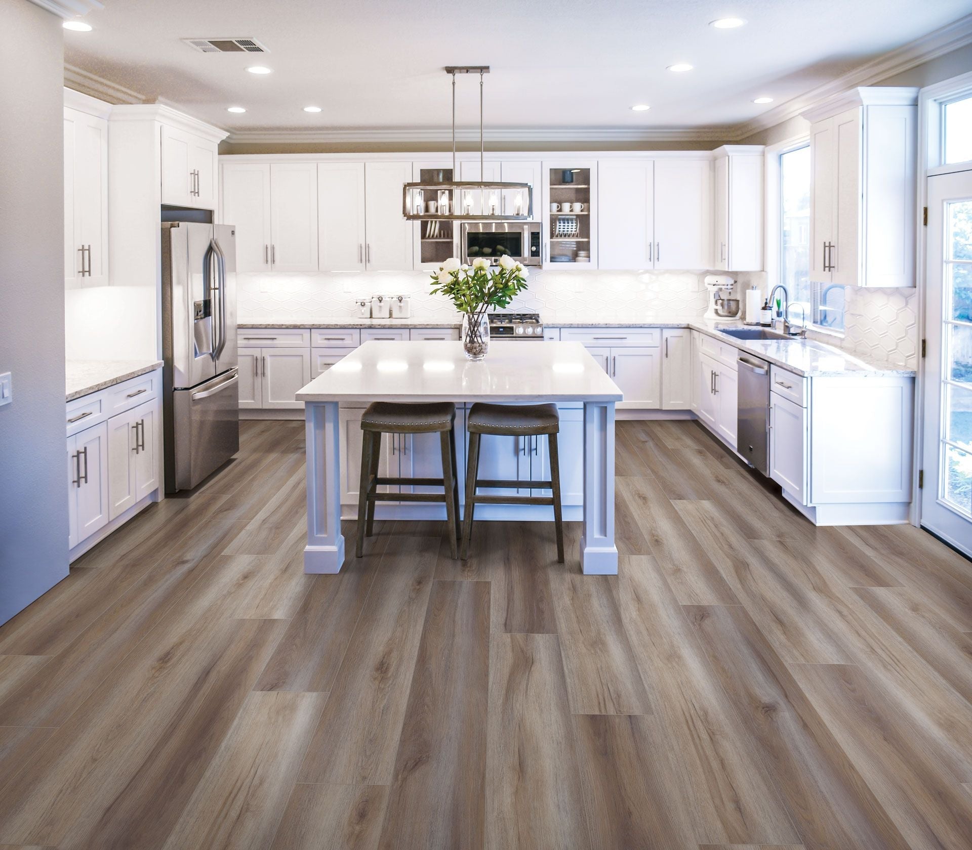 Cortona Maxx waterproof designs bring a sense of renewal and inspiration to your home or office space. The luxurious ultra-wide plank floors are well-loved by the best designers, who see them as the perfect stage for endless design possibilities. Stunning coastal neutral or warm comforting color tones are the ultimate choice for timeless elegance and easy care.